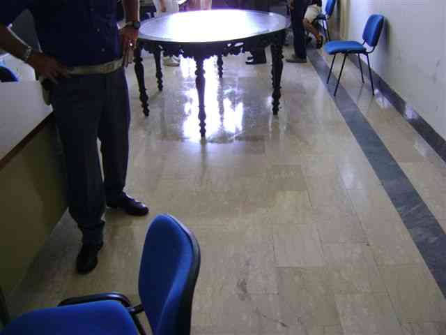AVERSA. Alta tensione stamani nella casa comunale. I precari della Geo Eco occupano la sala dattesa del gabinetto del sindaco e spargono dellabenzina sul pavimento.