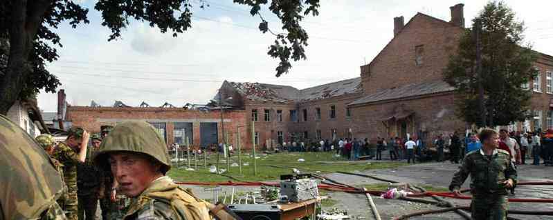 Vive già da due giorni in uno stato irreale di assedio, quando il 3 settembre del 2004 le forze speciali russe decidono di fare irruzione, per mettere fine al massacro che si stava perpetuando. Alle ore 9.30 del primo giorno dellanno scolastico il 1° di settembre, quello che i russi chiamano Giorno della conoscenza, circa 1300 persone tra alunni, genitori, insegnanti, conoscenti, intervenuti a questa cerimonia molto particolare, nel corso della quale gli studenti del primo anno donando un fiore a quelli che effettueranno lultimo anno di scuola, che a loro volta accompagnano quelli del primo anno in classe, vengono presi in ostaggio da un gruppo di terroristi.