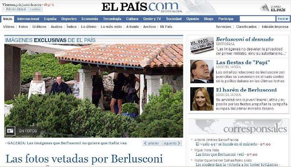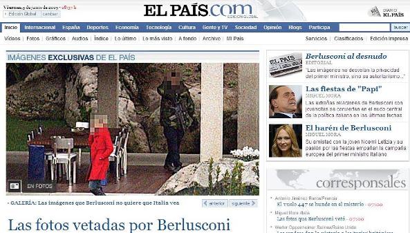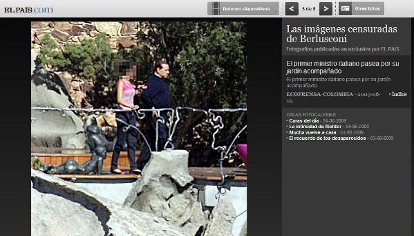 Nella sua edizione on line, il quotidiano spagnolo El Pais ha pubblicato stamani cinque immagini scattate dal fotografo Antonello Zappadu a Villa Certosa, residenza estiva di Silvio Berlusconi, e sequestrate dalla Procura di Roma.