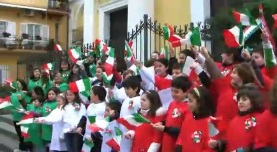 Forte e sentita anche la partecipazione degli alluni delle scuole materne, elementari e medie che hanno intonato linno di Mameli e, indossando delle magliette verdi, bianche e rosse, hanno formato una bandiera umana che ha sfilato in testa al corteo attraversando gran parte della cittadina.