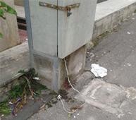 Fili elettrici che risultano palesemente non a norma perché oltre ad essere scoperti, non presentano alcuna protezione e sono uniti tra loro dal nastro isolante. Scoperti e a portata di mano di tutti, soprattutto dei bambini. Incredibile! Uno squallore sociale e un pericolo intollerabili. Ma non è tutto. Nella parte comunale, quella inferiore, proprio all’ingresso del Cimitero, la situazione è pressoché simile. Oltre ad esserci fili elettrici volanti, abbiamo notato e filmato cabine elettriche prive delle dovute protezioni di plastica che potessero isolarle dall’acqua piovana. Ma non basta. E, dulcis in fundo, così come ci hanno raccontato alcuni cittadini che abbiamo incontrato durante la realizzazione del reportage, vi è una zona del nuovo cappellone comunale, dove è stato installato un cancello in ferro, che racchiude una serie di loculi privati. Che vergogna!