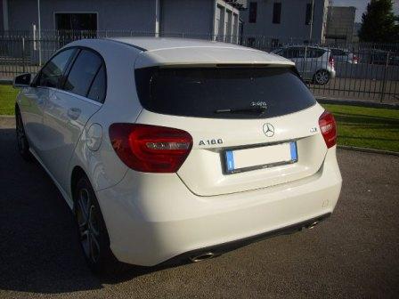 LINEA. Esternamente la nuova Classe A si è rivoluzionata totalmente nelle forme. Scordatevi le forme da monovolume compatta delle precedenti generazioni: la nuova vettura tedesca è più lunga di 41 cm rispetto alla precedente serie, è più bassa di 19 cm, e presenta forme compatte da grintosa sportiva (sembra quasi una coupè a 5 porte). Molto accattivante il frontale con il cofano spiovente, la mascherina pronunciata con cromature e i gruppi ottici trapezoidali con fari diurni a led integrati. Posteriormente abbiamo una coda bombata e sportiva resa ancora più grintosa dallo spoiler, dal lunotto piccolo e dai grandi fari.