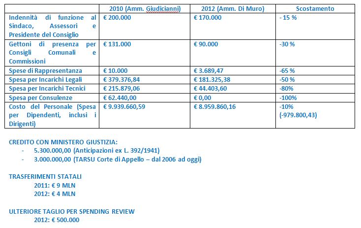 Un risultato straordinario quello di Santa Maria Capua Vetere, frutto di una gestione finanziaria, operata dallAmministrazione Comunale, equilibrata e accorta come testimoniano i dati messi a confronto con la precedente gestione consiliare: 50% in meno di incarichi legali rispetto alla precedente amministrazione (da 380mila a 180mila euro); l80% in meno di incarichi tecnici affidati (da 215mila a 44mila euro); 65% in meno di spese di rappresentanza (da 10mila a 3.700 euro) e azzeramento totale delle consulenze esterne (sia nel 2011 che nel 2012), mentre nel solo 2010 venivano affidati incarichi per oltre 62mila euro.