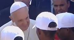 La Chiesa vi è vicina nella ricerca di una vita più dignitosa per voi e le vostre famiglie. A voi, O Scià, ha detto Bergoglio, utilizzando unaparola del dialetto locale, che significa fiato mio o mio respiro, che gli isolani adoperano come saluto amichevole.