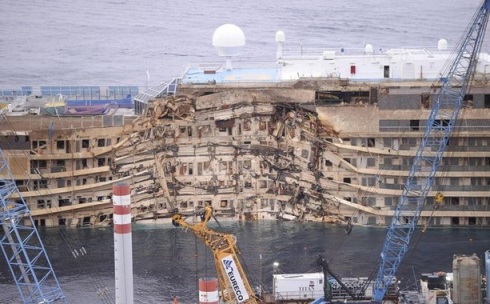 La Concordia, ruotata di 65 gradi, si trova in posizione verticale e poggia sulle piattaforme create ad hoc a formare un fondale artificiale a circa 30 metri di profondità. Ora si può pensare a studiare le fasi successive, montando i cassoni per farla galleggiare, e successivamente spostare, ma soltanto dopo aver valutato i danni. La prima cosa da fare è la messa in sicurezza della Concordia: bisogna controllare le condizioni della fiancata danneggiata: sul lato si notano le deformazioni provocate dagli scogli. Inoltre, restano da verificare le condizioni delle acque, scongiurando la fuoriuscita di sostanze inquinanti, anche se dallOsservatorio ambientale appositamente istituito per la Concordia non ritengono ci saranno scarichi tali da poter creare una bomba ecologica.