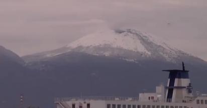 NAPOLI. La neve ricopre il Vesuvio dalla cima fino alle quote più basse: le piogge delle scorse ore e le temperature più rigide hanno determinato la formazione di uno strato nevoso ben visibile, martedì mattina, da Napoli e dai comuni della zona costiera.