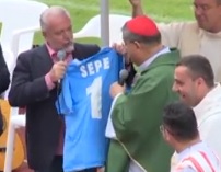 Napoli. E’ giunto a Dimaro, sede del ritiro del Napoli, in Trentino, per celebrare la santa messa e ricevere la maglia col numero 1.