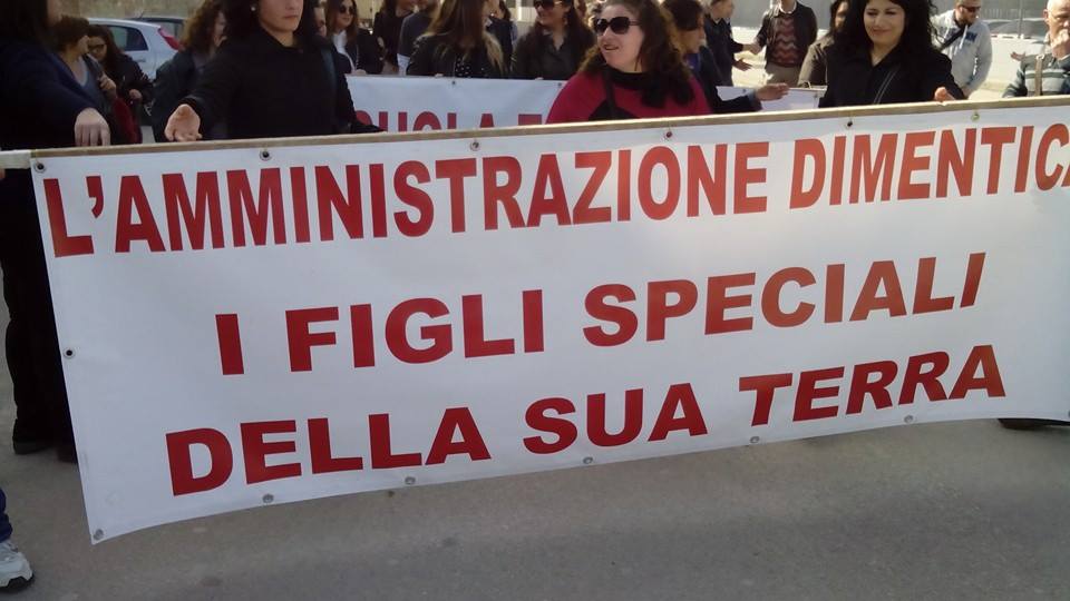 Gricignano – “Ora basta, i bambini non si toccano”. E’ lo slogan che venerdì mattina ha accompagnato la protesta dei genitori dei bimbi disabili di Gricignano facenti parti del comitato “Figli di un Dio minore”. Una marcia, partita dalla scuola ‘Santagata’ fino a piazza Municipio, organizzata dopo lo stop delle ore dedicate all’assistenza e allo studio per gli alunni minori con disabilità nella scuola primaria.