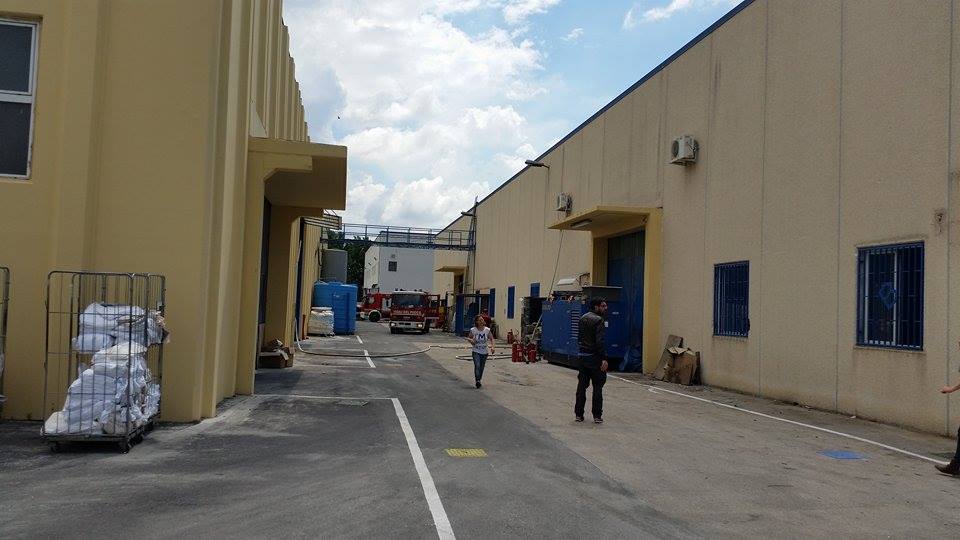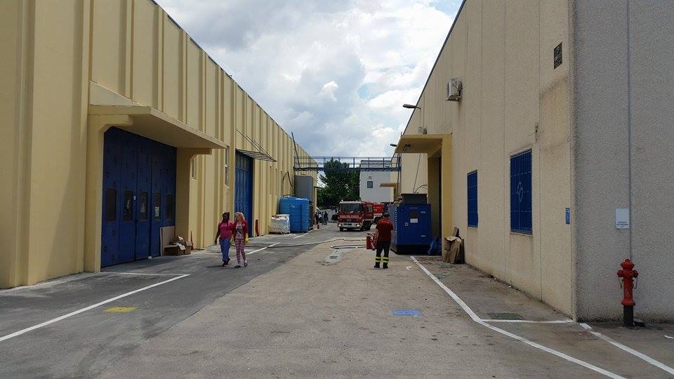 In fiamme, per motivi da accertare, la copertura impermeabilizzante dello stabilimento. Nessun ferito, solo qualche lieve malore per le operaie causato dalla densa coltre di fumo sprigionata dal rogo.