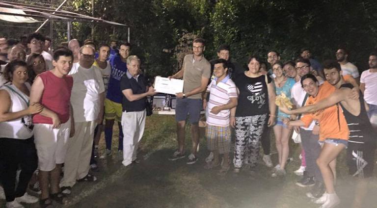 Il sodalizio marcianisano infatti ha presieduto alla finalissima del “Clebbionato”, torneo di calcio a 5 che vede sfidarsi le associazioni marcianisane, grazie all’invito ormai consueto dell’organizzazione che ha devoluto e consegnato la somma di 500 euro ricavata con l’apporto di tutti i partecipanti a i quali si sono aggiunti 100 euro donato dall’Associazione “Le Case” ed il ricavato dell’incasso della vendita in loco delle pizze “a portafoglio” di Alfonso Golino proprietario della pizzeria “Il Mascalzone Latino” di Capodrise.