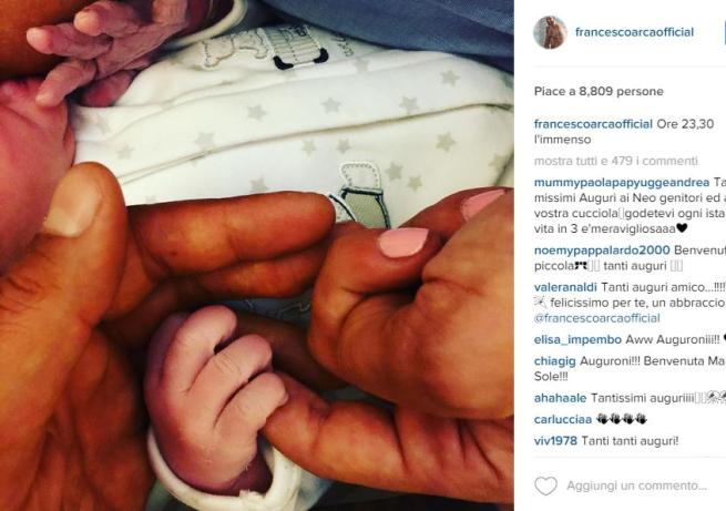 Francesco Arca è diventato papà: l’ex tronista di “Uomini e Donne” annuncia la nascita della piccola Maria Sole.
