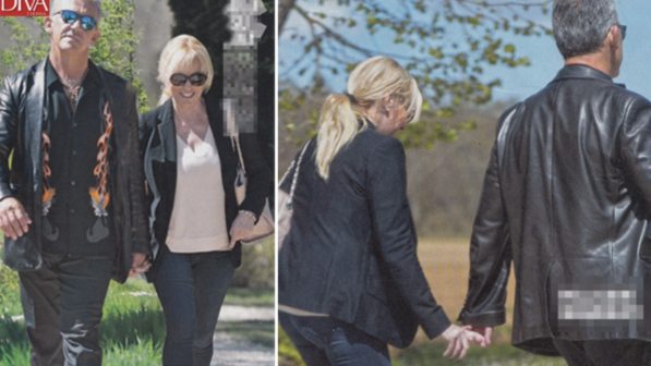 Nessun atteggiamento intimo ma coccole e carezze e passeggiate mano nella mano per i due che si sono concessi una giornata nei cortili dell’Abbazia di San Galgano, tra le colline senesi…Soli ed affiatati come una coppia di innamorati alla loro prima gita insieme.