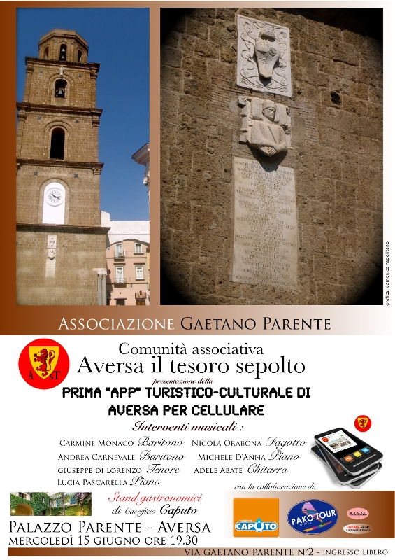Aversa – Mercoledì 15 giugno, al Palazzo Parente, in collaborazione con l’associazione “Gaetano Parente”, la comunità associativa “Aversa il tesoro sepolto” presenta la prima “App” turistico-culturale di Aversa per cellulare “Aversa il tesoro sepolto”, disponibile su piattaforme Android.