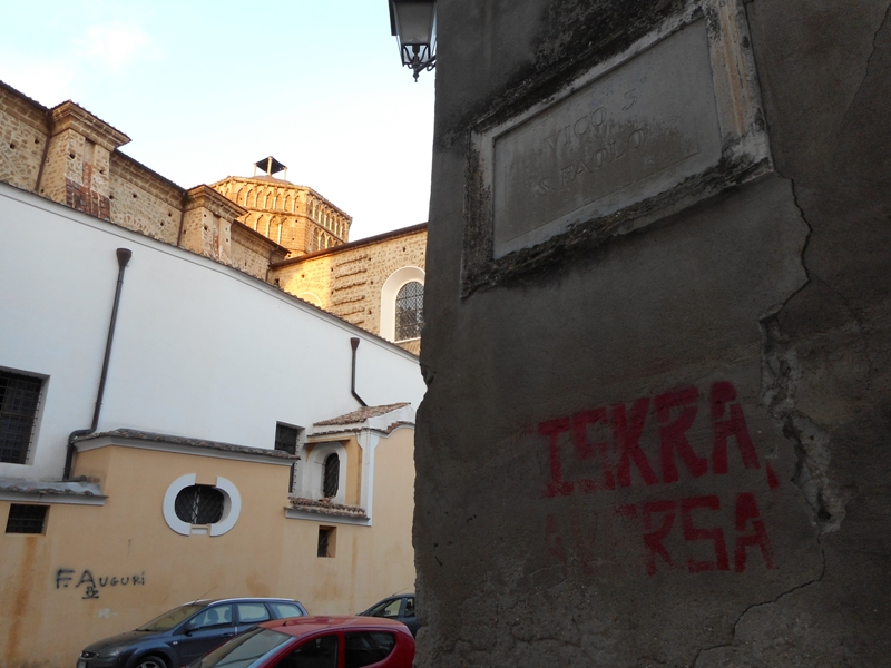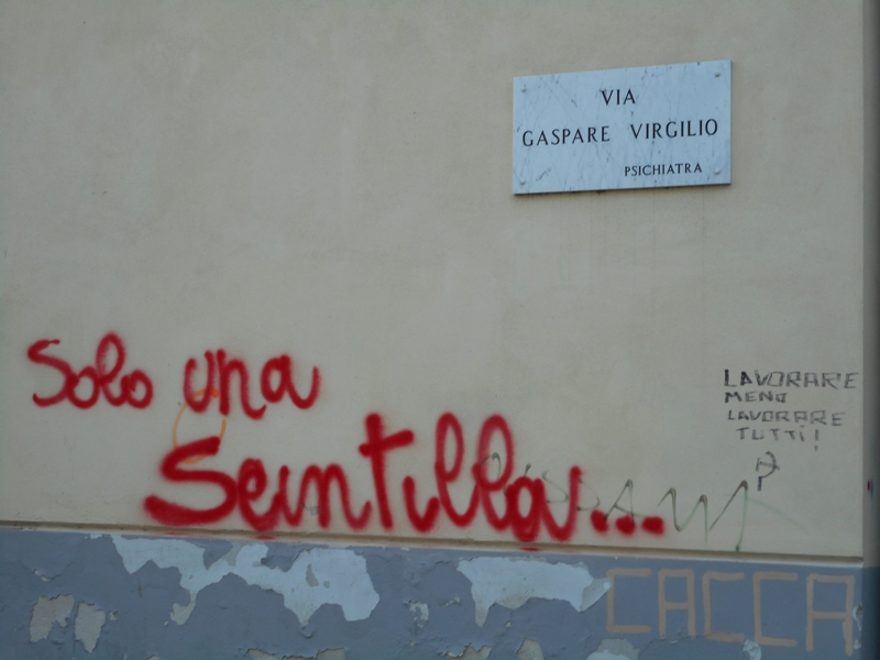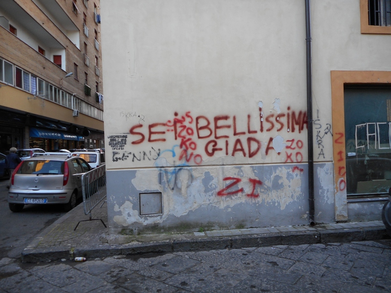 A parte le solite “dediche d’amore”, risulta, ad esempio, quantomeno singolare che un collettivo giovanile (o alcuni suoi componenti che, si spera, agiscano in modo individuale) che ascrive fra le sue finalità il recupero di “territori martoriati e devastati, sui quali le tante problematiche sociali, culturali, ambientali ed economiche hanno reso la nostra quotidianità sempre più precaria”, e si impegna per la valorizzazione di un bene abbandonato come la Maddalena, con iniziative culturali all’interno degli spazi occupati nell’ex manicomio, non si faccia problemi a riempire di graffiti altri beni cittadini come il complesso di San Domenico, piazza Cirillo, via Gaspare Virgilio o piazza Marconi, contribuendo in maniera significativa al già avanzato stato di degrado dell’intera area urbana.