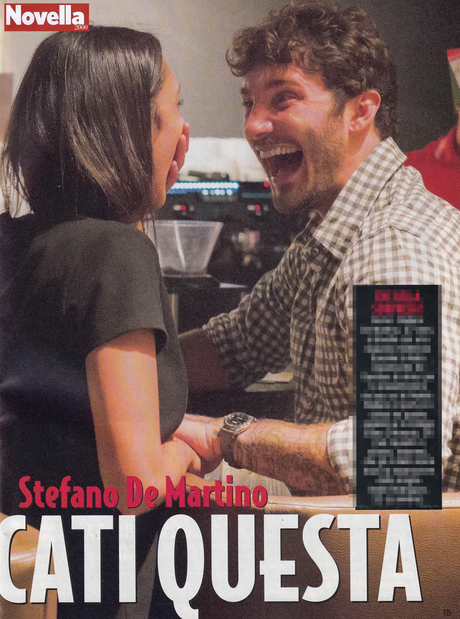 Negli scatti di Novella il ballerino è ripreso durante la festa di Garrison in un locale romano. Stefano si diverte in compagnia, ma al momento giusto si apparta per ridere e scherzare con una mora con cui mostra grande complicità. Lui è corteggiatissimo, ma lei sembra aver già conquistato il suo cuore.