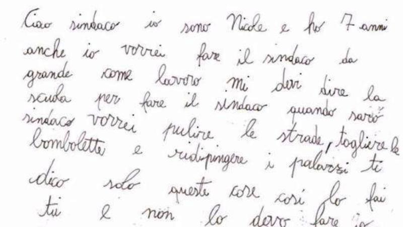 Il sindaco di Bari, Antonio Decaro, deve guardarsi da una nuova possibile contendente per la poltrona di primo cittadino. E’ Nicole, 7 anni, che ha scritto al sindaco chiedendo informazioni su quale scuola fare per poter intraprendere quel lavoro.