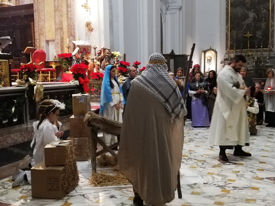 Aversa (Caserta) – Nella splendida cornice della Cattedrale di San Paolo ad Aversa ha avuto luogo, domenica 29 dicembre, la rappresentazione in costume del Presepe di Greccio. La fraternita dell’Ordine Francesco Secolare di Aversa, che ha organizzato l’evento, molto sentito e partecipato, ha voluto rievocare il presepe vivente nato per volontà del poverello d’Assisi, San Francesco, il quale, di ritorno da un viaggio in Palestina, volle celebrare a Greccio, cittadina in provincia di Rieti, la nascita di Gesù, organizzando il primo presepe vivente della storia.