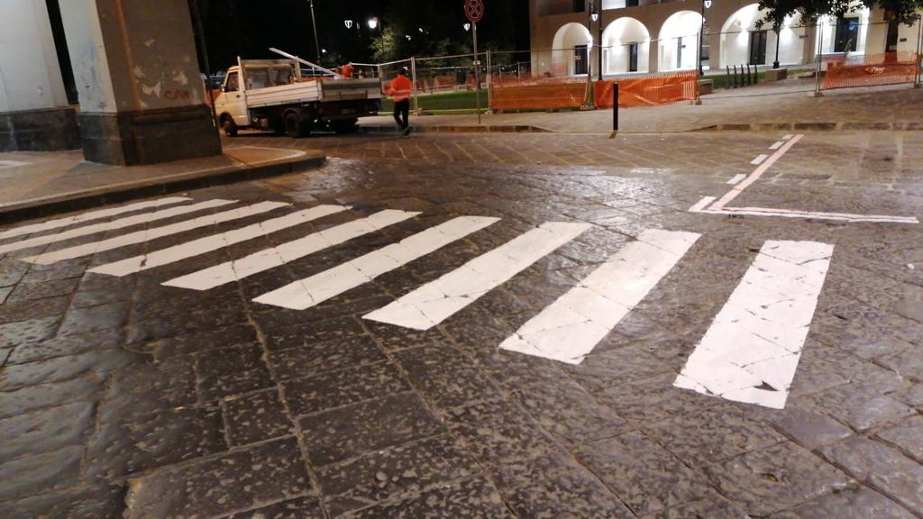 Il primo cittadino, tornando alla segnaletica, voluta anche dal suo vice Marco Villano, continua: “Nel mese di settembre siamo intervenuti con una ditta specializzata principalmente nei pressi di tutte le scuole di competenza comunale, per rifare la segnaletica orizzontale ma anche installando la segnaletica verticale. Continuano gli interventi di rifacimento della segnaletica orizzontale come previsto dal servizio di sosta. Gradualmente riporteremo in uno stato di normalità tutta la città per garantire sempre più maggiore sicurezza ai pedoni”.