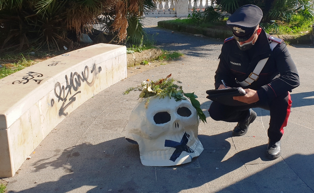 Sono stati rimossi e sequestrati i teschi di cartapesta posizionati nella notte tra lunedì e martedì a Napoli dagli attivisti del movimento ambientalista Extinction Rebellion (XR). Carabinieri e vigili del fuoco sono intervenuti in diversi punti della città per liberare le statue della città divenute ‘bersaglio’ dell’azione di XR. – continua sotto –