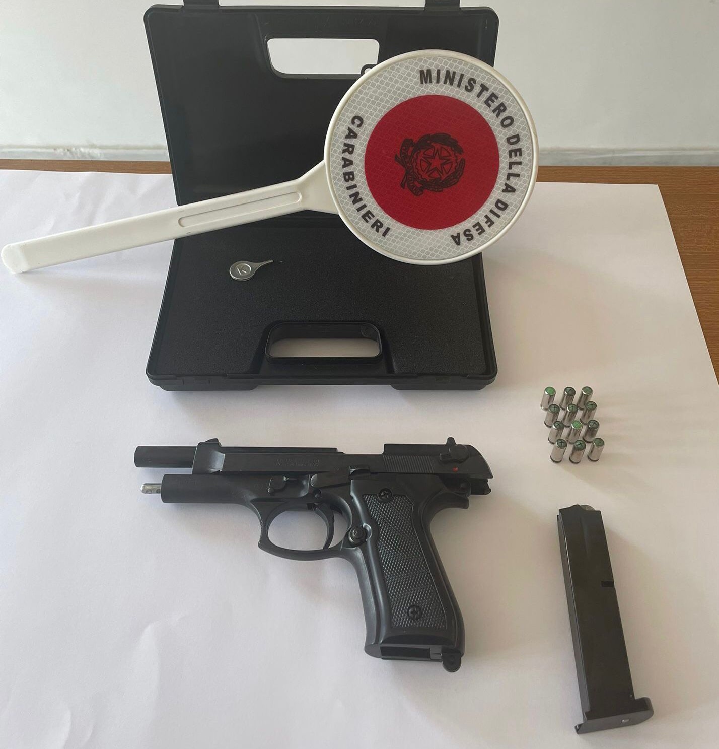 Successivamente l’uomo si è allontanato in sella ad una bicicletta. L’immediato intervento dei carabinieri, oltre al rinvenimento sul posto di 9 bossoli e 2 cartucce a salve, ha consentito di identificare l’uomo che, sottoposto a perquisizione personale e domiciliare, è stato trovato in possesso di una pistola scenica priva di tappo rosso, ancora con un colpo a salve.