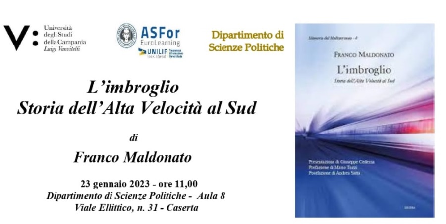 Questo e tanto altro racconta “L’imbroglio – Storia dell’Alta Velocità al Sud”, il volume scritto da Franco Maldonato, con la introduzione di Giuseppe Cederna, la prefazione di Mario Tozzi ed il Postfazione di Andrea Satta, presentato lunedì 23 gennaio al dipartimento di Scienze Politiche dell’Università degli Studi della Campania “Luigi Vanvitelli”.