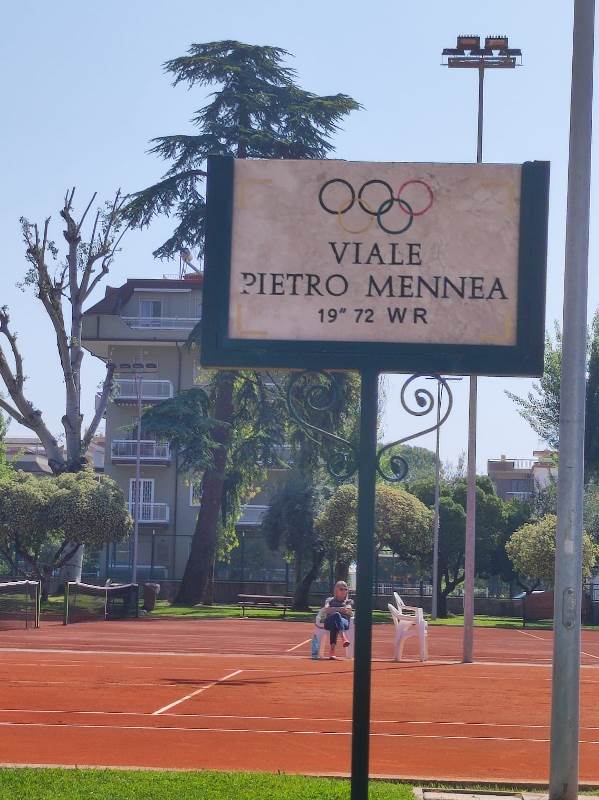 Campione olimpico dei 200 metri piani a Mosca 1980, Mennea, originario di Barletta, è stato il primatista mondiale della specialità dal 1979 al 1996 con il tempo di 19″72 (impresso sulla targa toponomastica del viale), che costituisce tuttora il record europeo. Ha detenuto, inoltre, dal 1979 al 2018, il record italiano dei 100 metri piani con il tempo di 10″01 (record europeo fino al 1984). Soprannominato “La Freccia del Sud” (nomignolo analogo a quello di un famoso treno espresso che collegava Milano con la Sicilia), è l’unico duecentista della storia che si sia qualificato per quattro finali olimpiche consecutive: dal 1972 al 1984. In virtù della sua carriera sportiva è stato insignito dell’ordine olimpico nel 1997 e introdotto nella Hall of Fame della Fidal.