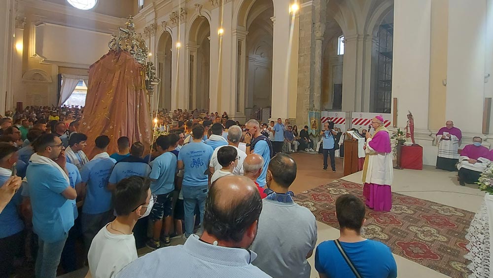 Le processioni, allora, devono essere un tempo nel quale il popolo di Dio esprime il desiderio di camminare con Maria, e di seguire Gesù in tutti i giorni della vita ed in tutte le situazioni e le strade che dovrà percorrere. Consapevole che le chiusure o le contrapposizioni più rigide non aiutano a vivere bene l’incontro con Maria, anzi ostacolano l’incontro dei figli con la Madre, come Vescovo, ringrazio i Sacerdoti e tutti i fratelli e le sorelle che, anche in questa ultima circostanza, hanno collaborato con chiarezza e disponibilità al far crescere un sincero spirito di dialogo nella nostra comunità. – continua sotto –
