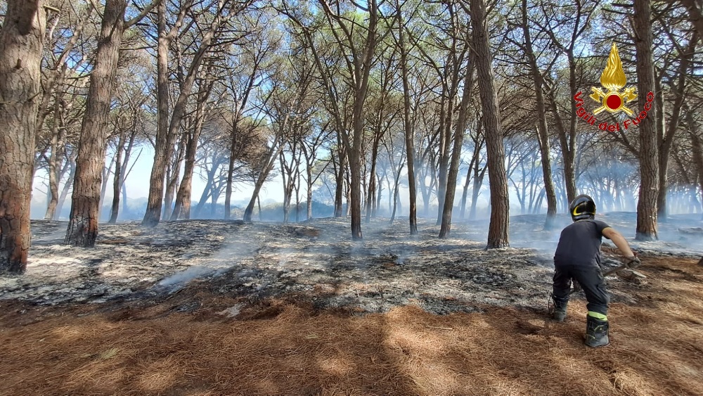 Le fiamme hanno interessato circa 10mila metri quadrati di macchia mediterranea costituita da arbusti ed alberi di pino. A dare l’allarme i residenti della zona ed il personale del vicino campeggio Internazionale.