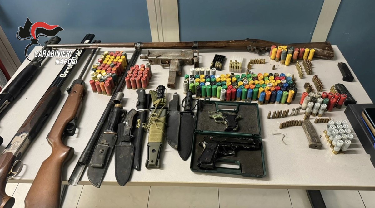Armi, pugnali da guerra ed anche un mitragliatore. I carabinieri della sezione operativa di Pozzuoli hanno arrestato un 33enne di Marano perché, nel corso di una perquisizione nella sua abitazione, hanno trovato 2 pistole, un mitragliatore, 3 fucili, 6 pugnali, una carabina ad aria compressa e munizioni di vario calibro. – continua sotto –