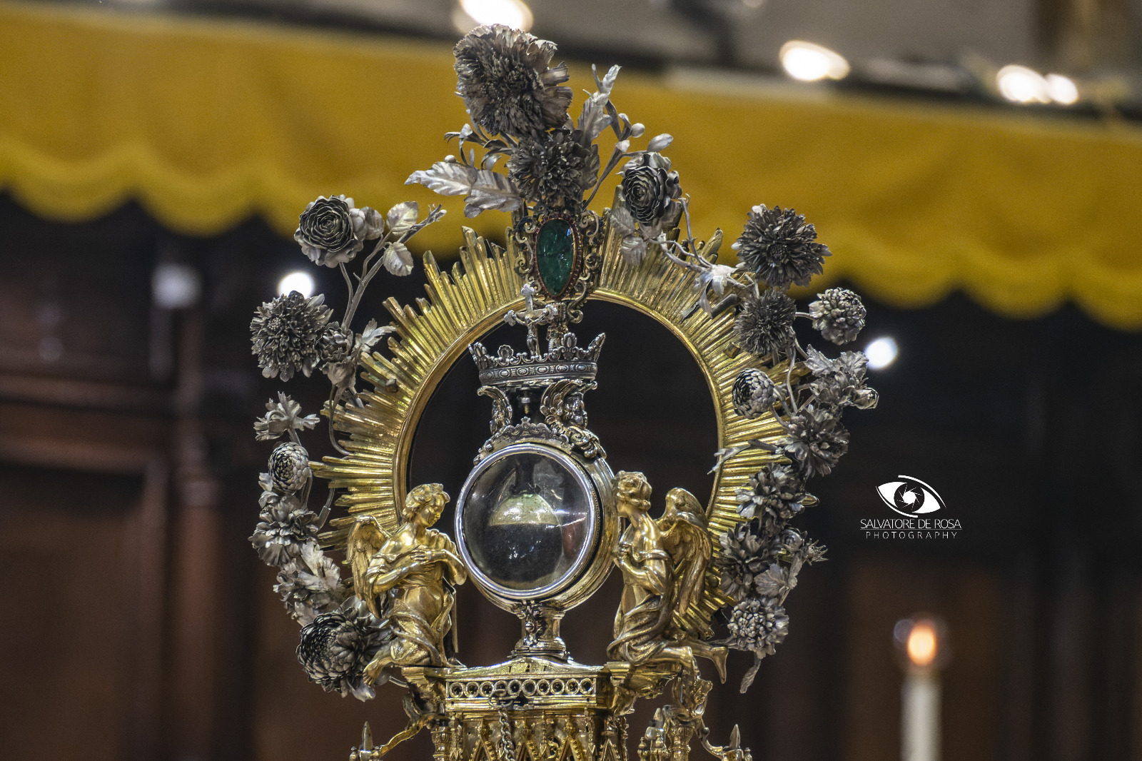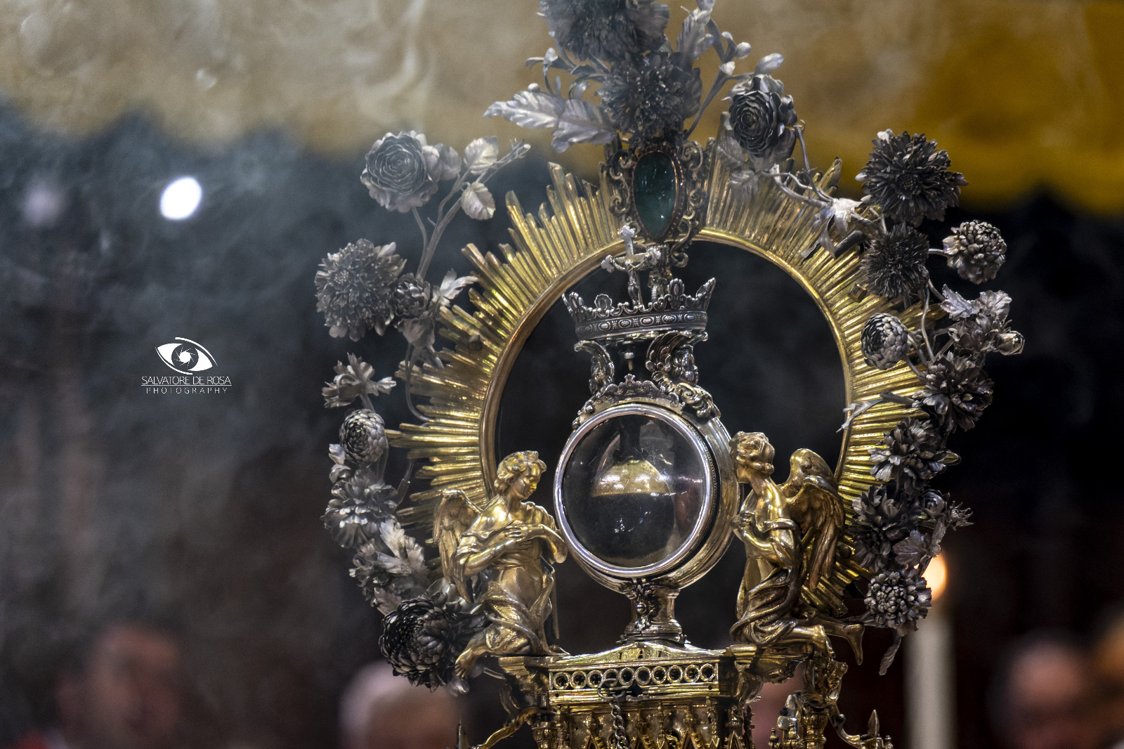 La storia del “Miracolo di San Gennaro” – Gennaro, nato a Napoli nella seconda metà del III secolo, è eletto vescovo di Benevento. Viene decapitato per ordine di Diocleziano il 19 settembre del 305. Durante l’esecuzione una nobildonna di nome Eusebia riesce a raccogliere in due ampolle il sangue di san Gennaro, custodendolo con molta venerazione. Dopo l’editto di Costantino un vescovo di Napoli fa traslare solennemente le ossa di san Gennaro da Pozzuoli alle catacombe della sua città. Durante il tragitto Eusebia regala al vescovo anche le due ampolle con il sangue del martire. Il fenomeno, che ormai da secoli si ripete, è la liquefazione del suo sangue. La notizia più antica si trova in un autore siciliano, il quale racconta che il 17 agosto del 1389 “fu fatta una solenne processione per il miracolo che il Signor nostro Gesù Cristo ci mostrò nel sangue del beato Gennaro, che era in un’ampolla e si liquefece come se nel giorno stesso fosse uscito dal corpo del Beato”. Il fatto si ripete ogni anno nell’anniversario del martirio, il 19 settembre, quindi nel primo sabato di maggio, in cui si ricorda la prima traslazione da Pozzuoli a Napoli, e il 16 dicembre, anniversario della terribile eruzione del Vesuvio arrestata, secondo la credenza dei napoletani, per intercessione del loro patrono. SOTTO UNA GALLERIA FOTOGRAFICA (credits: Salvatore De Rosa)