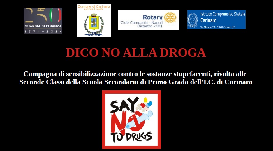 Carinaro (Caserta) – Un appuntamento che ha l’obiettivo di sensibilizzare i giovani sui pericoli legati all’uso di sostanze stupefacenti, con un focus sulla prevenzione. E’ “Dico No alla Droga”, dedicato agli studenti delle seconde classi della scuola secondaria di primo grado, che avrà luogo venerdì 29 novembre, alle ore 9.30, nell’aula consiliare del Comune di Carinaro, nato dalla collaborazione tra l’Istituto Comprensivo di Carinaro, il Comune di Carinaro, il Rotary Club Campania – Napoli Distretto 2101 e la Guardia di Finanza.