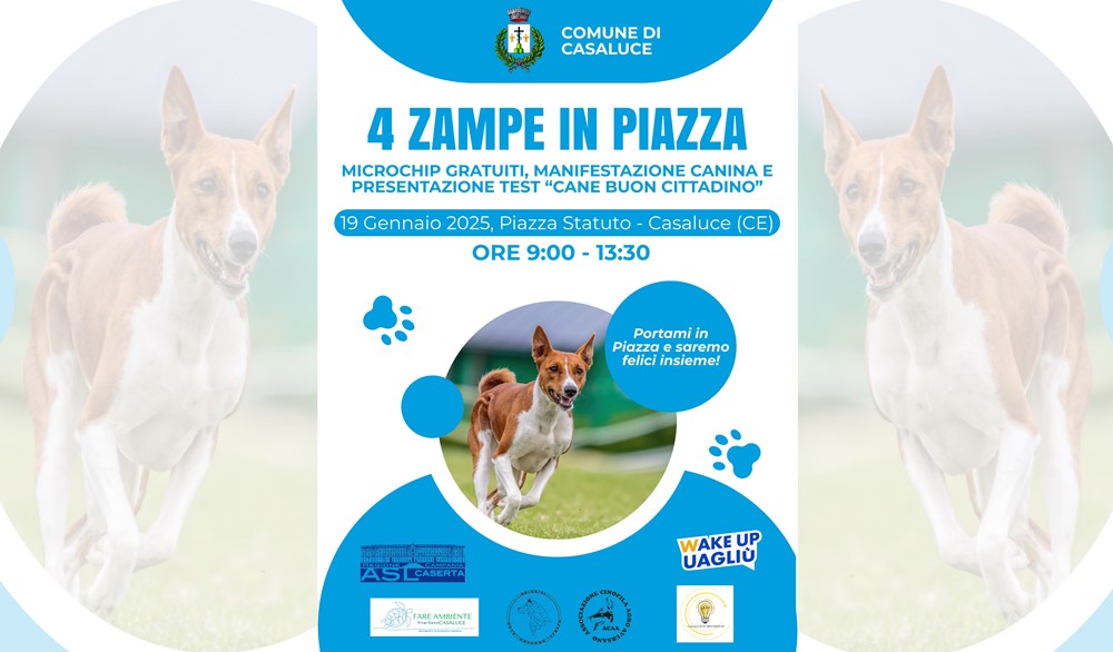 Casaluce (Caserta) – Un evento dedicato ai cani e ai loro proprietari quello in programma a Casaluce, domenica 19 gennaio, dalle 9 alle 13.30, in piazza Statuto. Organizzata dall’Amministrazione comunale guidata dal sindaco Francesco Luongo, in collaborazione con l’Associazione Cinofila Agro Aversano, Rete College Italia, FareAmbiente Casaluce, Wake Up Guagliù e Casaluce in Movimento, l’iniziativa offrirà attività pensate per sensibilizzare e coinvolgere la comunità.