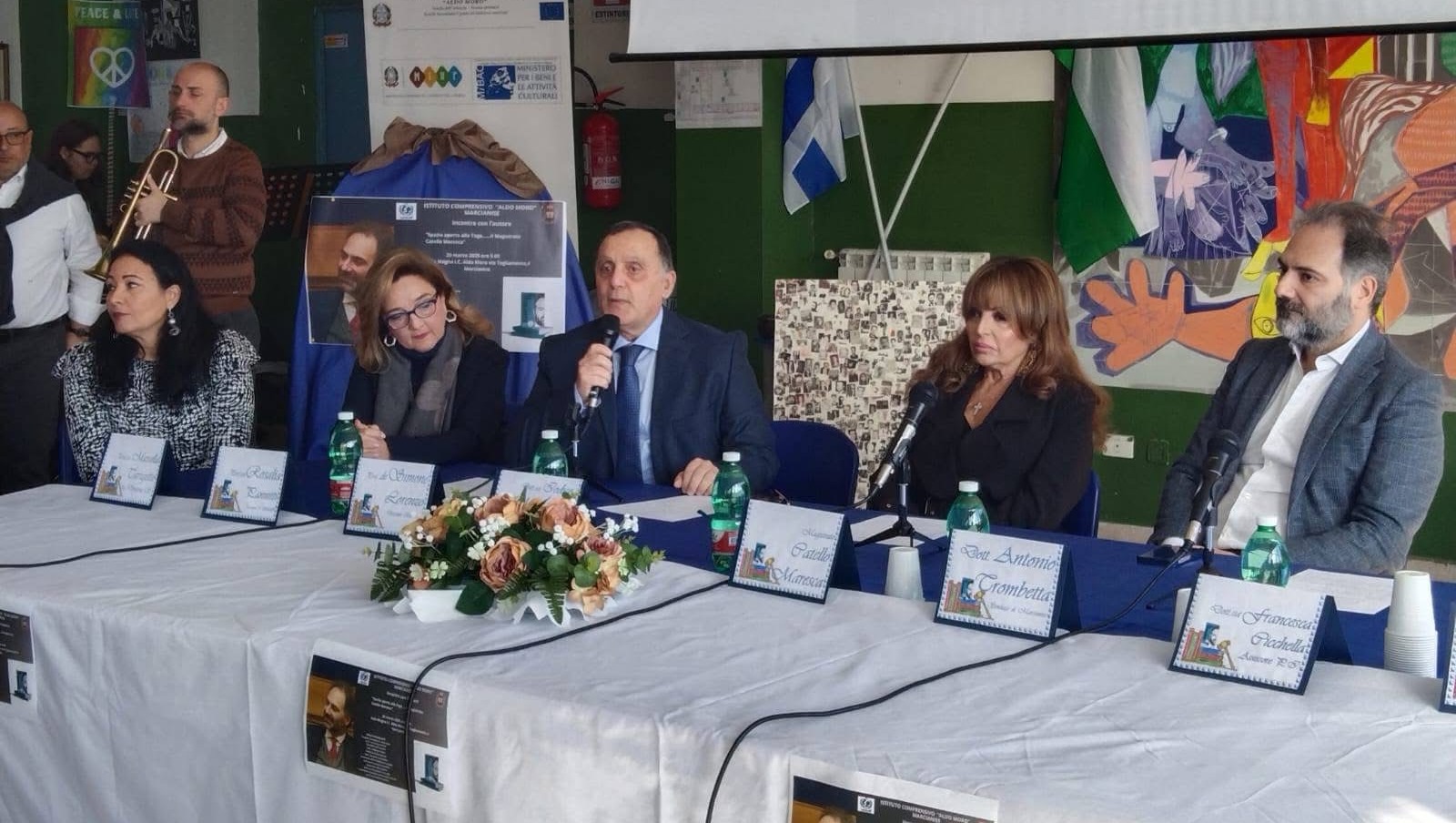 La mattinata è stata allietata dall’orchestra del percorso musicale dell’Istituto di via Tagliamento che ha accolto Maresca sulle note dell’Inno Nazionale preparato sapientemente dai maestri Domenico Birnardo per la tromba, Luigi Ciriello per il violino, Luigi Marzano per il pianoforte, Francesco Saverio Di Lillo per il clarinetto mentre il coro ha intonato la canzone “Pensa” di Fabrizio Moro, diretti dai maestri Paolo Di Fuccia e Luciana Cenname.
