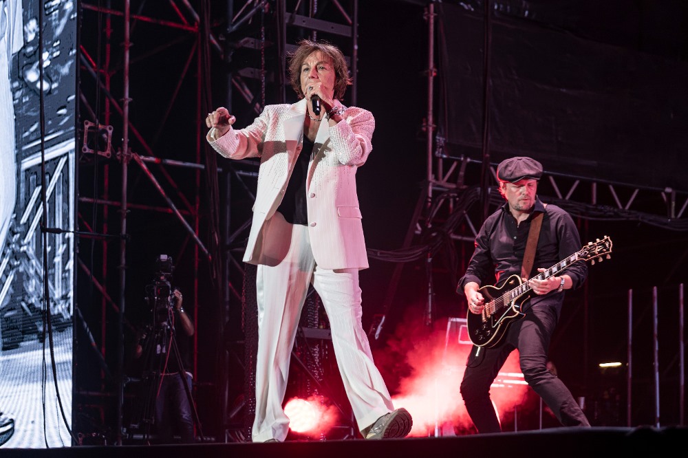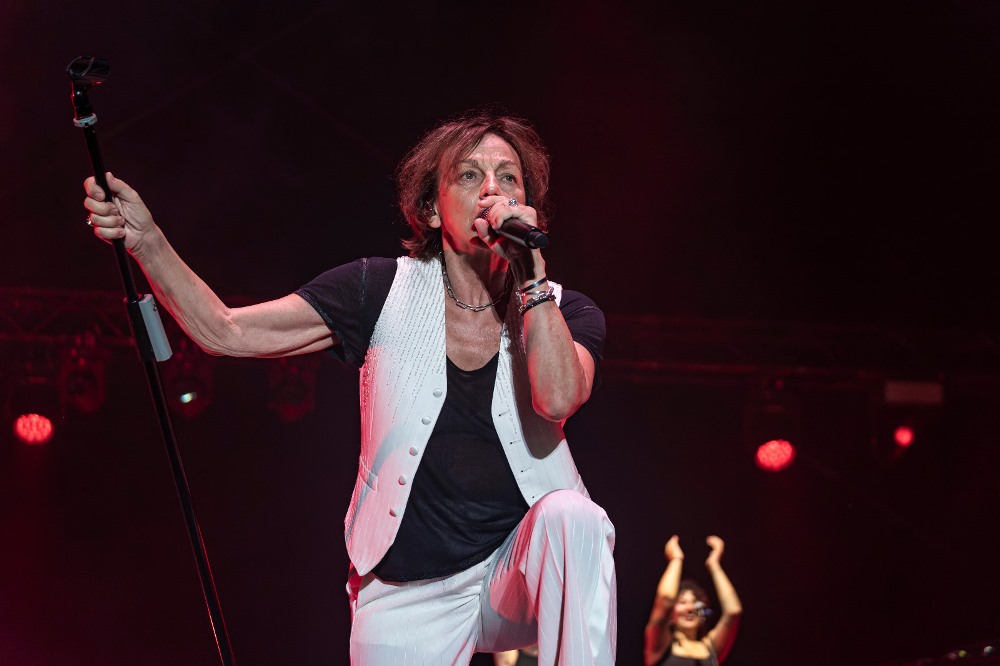 Un repertorio senza tempo – La scaletta ha unito passato e presente, dando spazio a brani simbolo della sua carriera come Ragazzo dell’Europa, Scandalo e Notti senza cuore, fino all’inno condiviso con Edoardo Bennato, Un’estate italiana. Non sono mancati momenti più intimi con pezzi come Ti voglio tanto bene e Il buio nei miei occhi (I’d rather go blind), che hanno sottolineato la versatilità interpretativa dell’artista.
