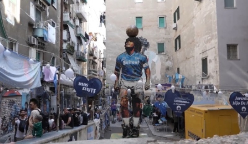 Il cancello è chiuso, i monumenti coperti, l’area interdetta. Nei Quartieri Spagnoli, cuore di Largo Maradona, la Polizia Municipale di Napoli ha posto sotto sequestro il materiale esposto attorno al murale dedicato a Maradona, punto di riferimento per migliaia di visitatori ogni anno.