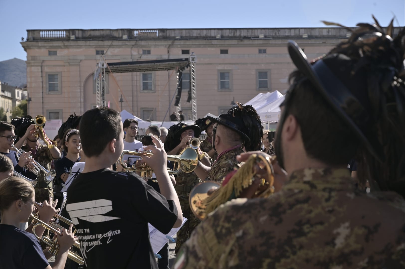 Inoltre, durante la giornata dell’11 ottobre, sono stati premiati tre Istituti Superiori campani primi classificati nel concorso culturale “Bersagliere Caporal Maggiore Aldo Chiarini – Medaglia d’Oro al Valor Militare”, presentando dei lavori sul tema dell’80° Anniversario della liberazione d’Italia. L’Istituto Statale di Istruzione Superiore Giovanni Battista Novelli di Marcianise si è aggiudicato il primo premio, seguito dal Liceo Statale Alessandro Manzoni di Caserta, e dal Liceo Artistico Onofrio Buccini di Marcianise.