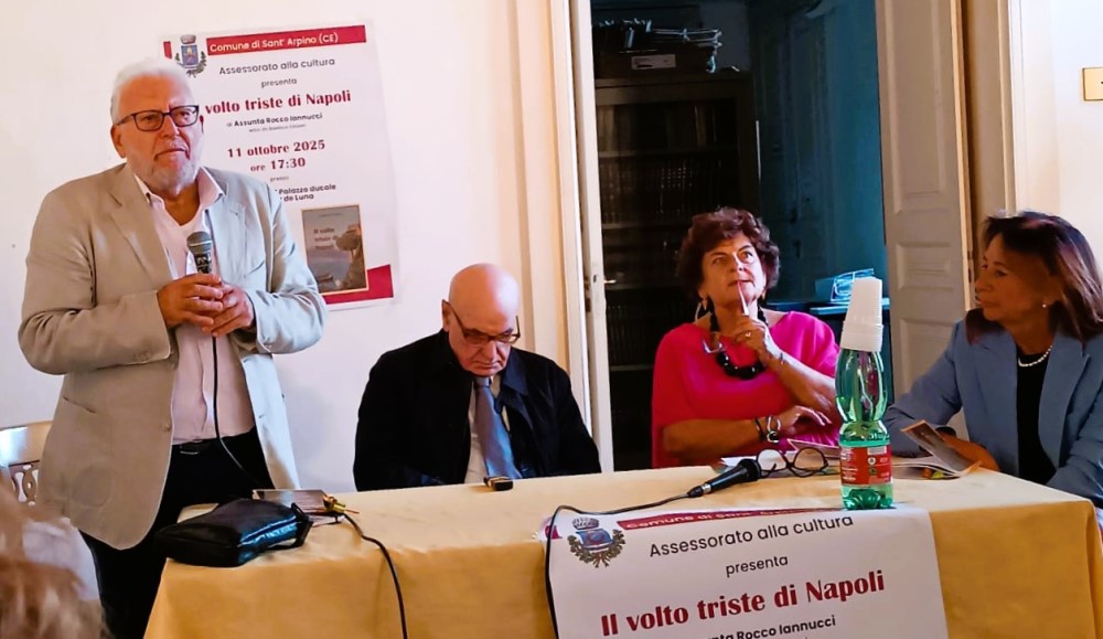 Sant’Arpino (Caserta) – Nel suggestivo scenario della Sala Busti di Palazzo Ducale “Sanchez de Luna” di Sant’Arpino, lo scorso fine settimana si è svolta con grande successo la presentazione del nuovo libro della scrittrice e docente Assunta Rocco Iannucci, intitolato “Il volto triste di Napoli”, pubblicato da Basilisco Editore. Questo evento ha rappresentato non solo un momento di celebrazione letteraria, ma anche un’importante occasione di riflessione sulla storia e sull’identità di Napoli in un periodo storico di grande tumulto.