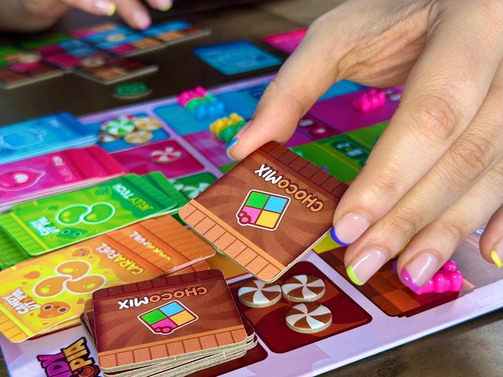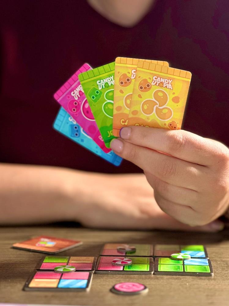 Candy Utopia nasce dall’idea di riportare in analogico gli immaginari visivi e i ritmi tipici dei videogame per smartphone, offrendo esperienze di gioco condivise in un contesto sociale e non solitario. Ambientato in un mondo di cioccolato, caramelle e orsetti gommosi, il titolo unisce estetica colorata e meccaniche strategiche contemporanee (tra posizionamento tessere, gestione risorse e combo tattiche) per un’esperienza leggera ma profonda e con una velocità tipica dei giochi contemporanei. Il progetto ha un passato importante: nato come Radianza, il prototipo è stato premiato con il Primé del Concorso Internazionale dei Creatori di Giochi da Tavola (CLuBB) di Boulogne-Billancourt, uno dei riconoscimenti più prestigiosi nel panorama mondiale della creazione ludica.