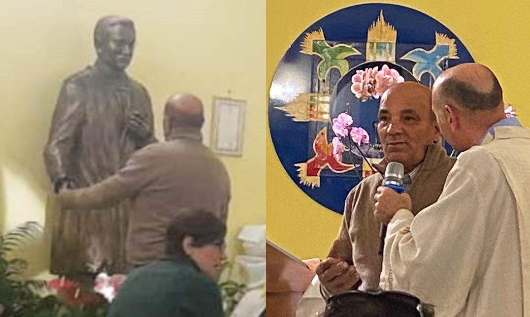 Aversa (Caserta) – “Sono guarito da in tumore al cervello grazie all’intercessione di San Giuseppe Moscati e senza subire alcun intervento chirurgico. Pure i medici erano sbalorditi. E sono passati 31 anni da allora”. La straordinaria testimonianza di un fedele, che ha prima abbracciato la statua del santo e poi ha raccontato il suo miracolo vicino al cappellano, don Luciano Pellino, ha commosso le numerose persone che il 16 dicembre si sono riunite nell’ accogliente cappella dell’ospedale intitolato al medico e fisiologo campano in occasione della festa liturgica del patrono della struttura sanitaria.