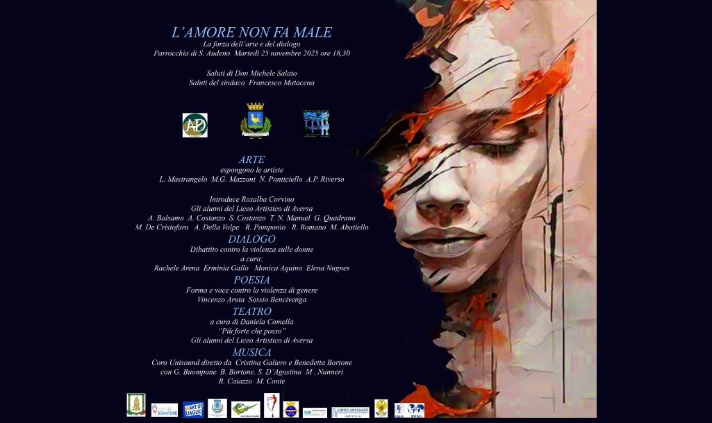 Aversa (Caserta) – L’amore vero non lascia lividi e non alza la voce: crea, non distrugge. È da questa convinzione che nasce L’amore non fa male – La forza dell’arte e del dialogo, l’iniziativa in programma martedì 25 novembre, alle ore 18.30, nella chiesa di Sant’Audeno, ad Aversa, in occasione della Giornata internazionale per l’eliminazione della violenza contro le donne.