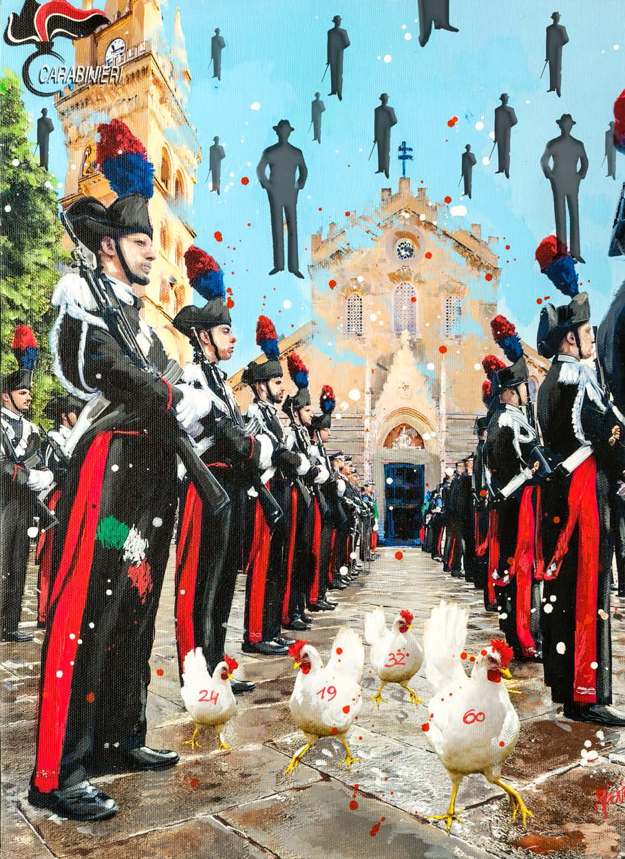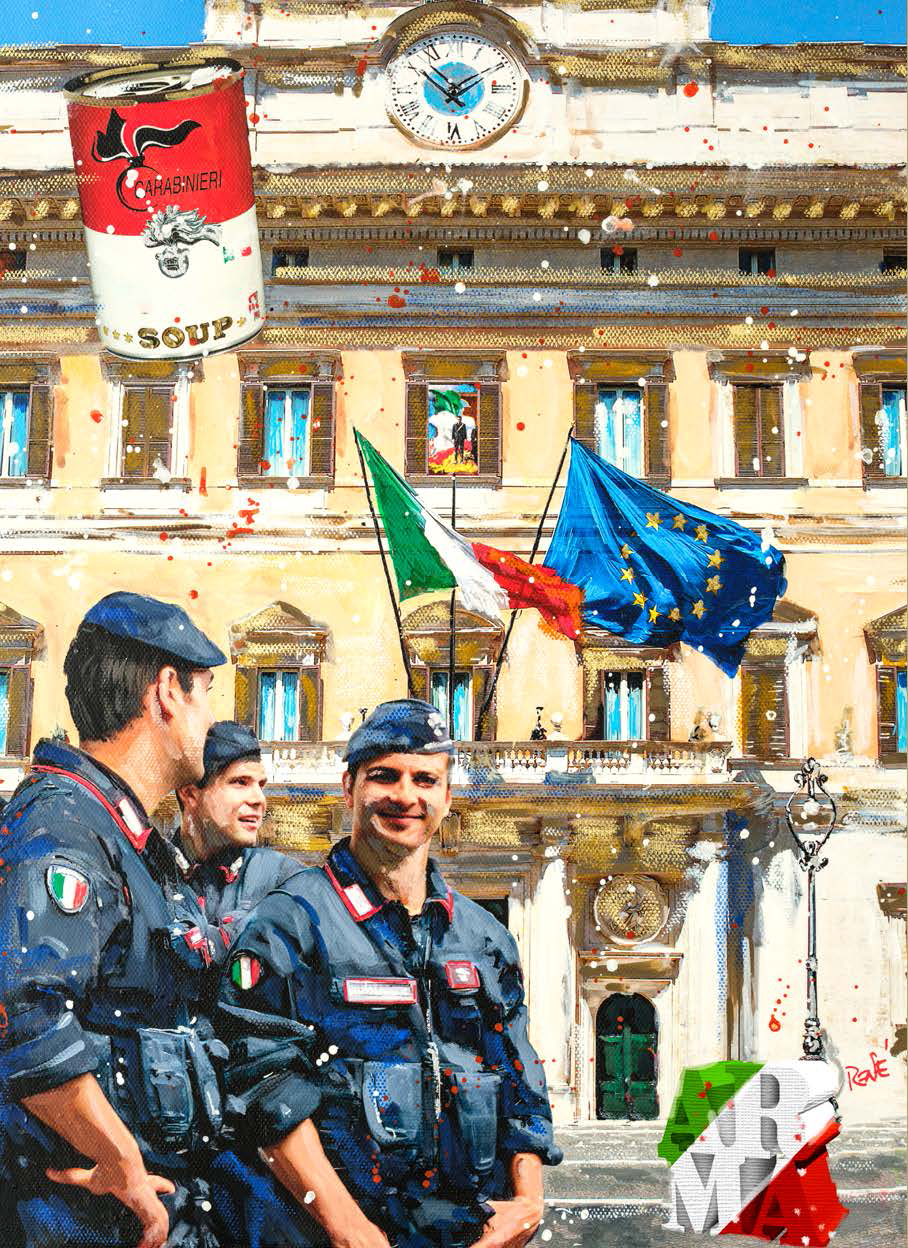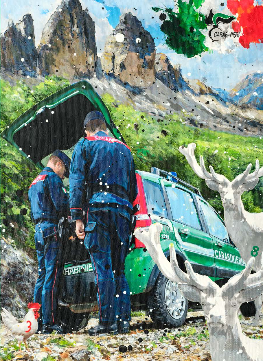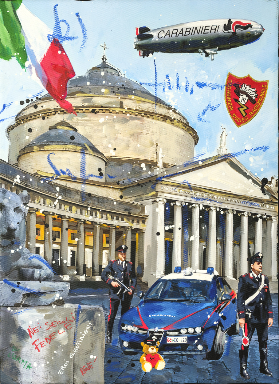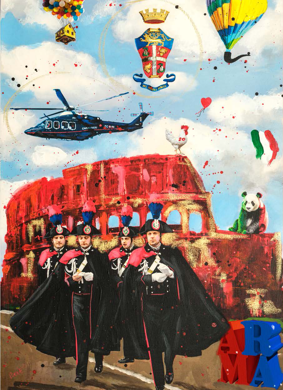 Le tavole e gli autori – Le illustrazioni portano la firma di René (Luigi Valeno), esponente della nuova Pop Art italiana. Nelle tavole, i carabinieri vengono ritratti nell’operare quotidiano tra la gente e nei luoghi simbolo d’Italia, a sottolinearne impegno, umanità e professionalità.