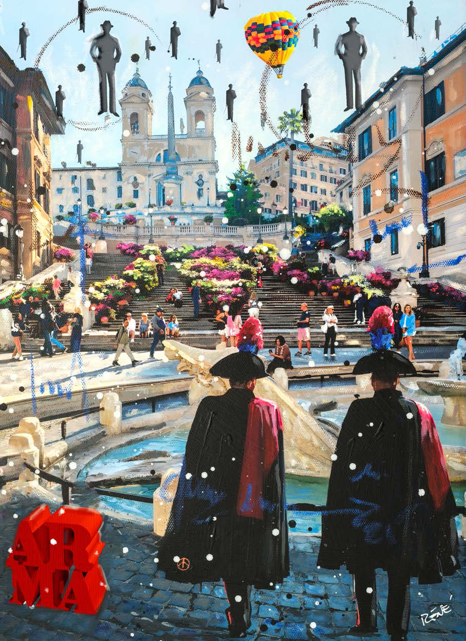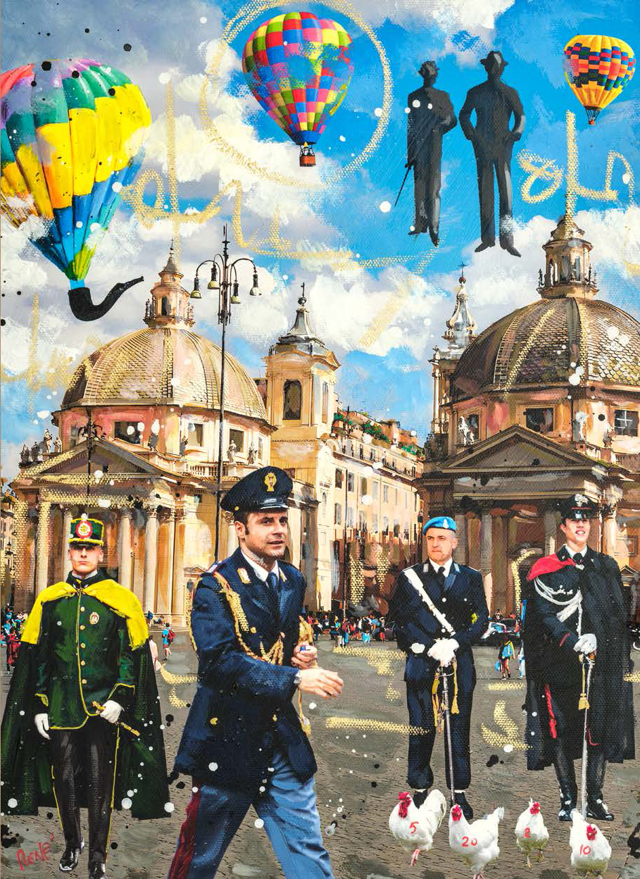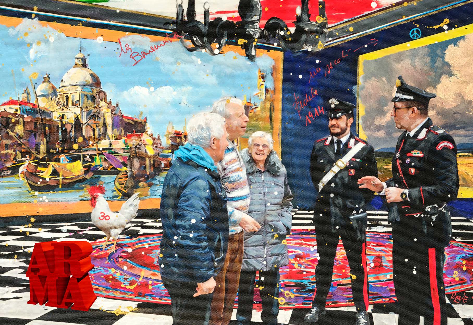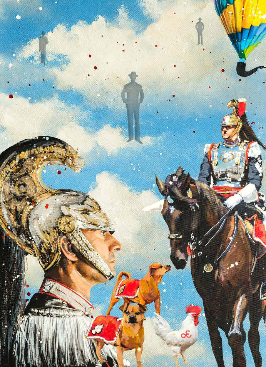 Le tavole e gli autori – Le illustrazioni portano la firma di René (Luigi Valeno), esponente della nuova Pop Art italiana. Nelle tavole, i carabinieri vengono ritratti nell’operare quotidiano tra la gente e nei luoghi simbolo d’Italia, a sottolinearne impegno, umanità e professionalità.