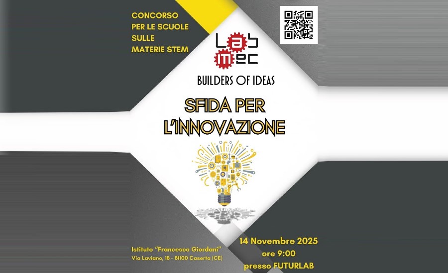 Caserta – All’istituto superiore “Francesco Giordani” di Caserta c’è attesa per la Sfida per l’Innovazione, la competizione che unisce scienza, tecnologia e creatività promossa dalla LabMec S.r.l. di Carinaro. L’appuntamento è fissato per venerdì 14 novembre, nella sede di via Laviano 18: un passaggio che il territorio scolastico casertano legge come segnale concreto della sinergia tra aula e impresa, con la formazione proiettata sulle competenze del futuro.