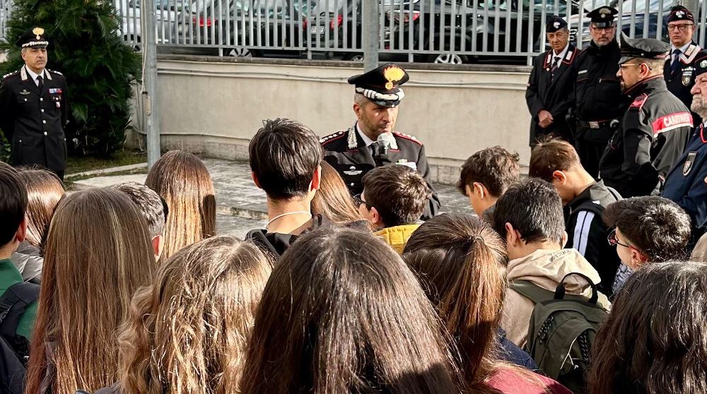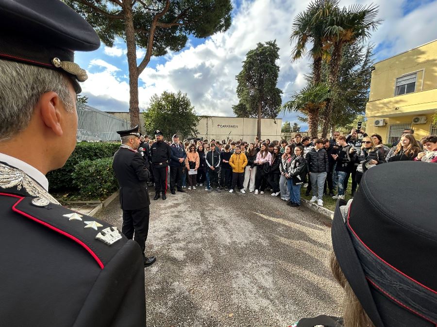 Caserta – Un tricolore che si alza nel silenzio del piazzale, oltre cento ragazzi schierati e un piccolo germoglio affidato alle nuove generazioni come impegno quotidiano alla legalità. È l’immagine simbolica della mattinata vissuta oggi al comando provinciale dei carabinieri di Caserta, dove circa cento studenti dell’istituto comprensivo “Dante Alighieri” hanno partecipato a un incontro formativo dedicato alla diffusione della cultura della legalità, inserito nel più ampio percorso nazionale di sensibilizzazione rivolto alle scuole.