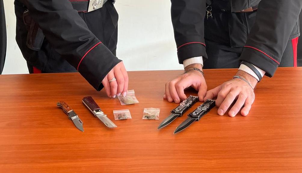 Nel corso di un servizio di pattugliamento, i militari hanno eseguito perquisizioni personali sui quattro, trovandoli tutti in possesso di coltelli. Un 21enne di Castel Volturno aveva una lama di 8 centimetri; un 19enne, anch’egli del posto, portava un coltello con lama di 10 centimetri. Un 18enne e un 20enne, originari di Giugliano in Campania, erano entrambi in possesso di coltelli con lama di 10 centimetri.