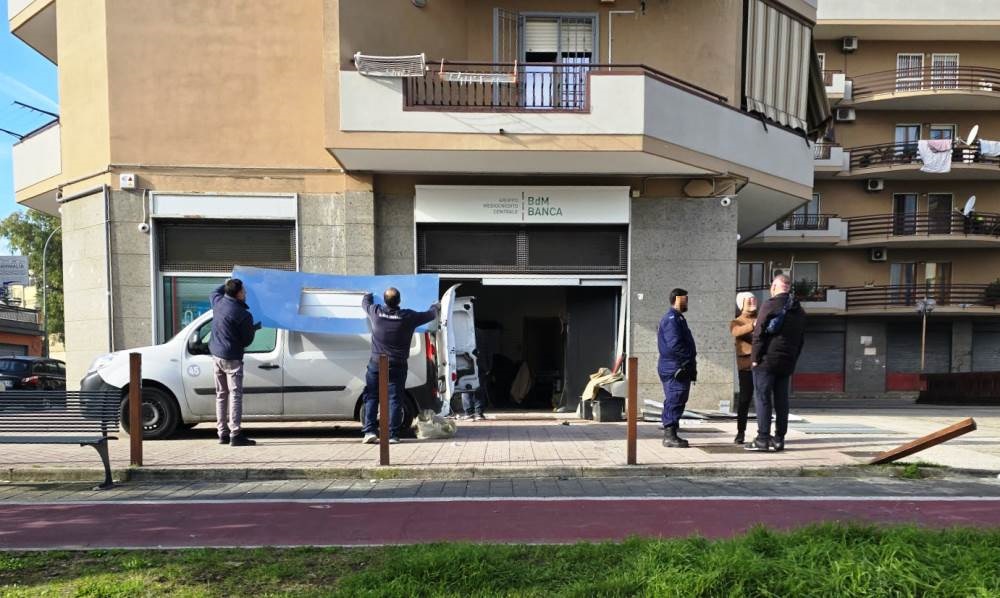 L’irruzione – Intorno alle ore 4 un furgone è stato lanciato contro l’ingresso dell’istituto di credito, sfondandolo. I ladri si sono rapidamente introdotti nei locali per puntare allo sportello automatico che hanno tentato di sradicare. Nel corso dell’azione hanno lasciato un’auto, una Fiat Panda risultata rubata, all’angolo tra via Filippo Saporito e via Alfonso d’Aragona, verosimilmente per garantirsi una via di fuga.