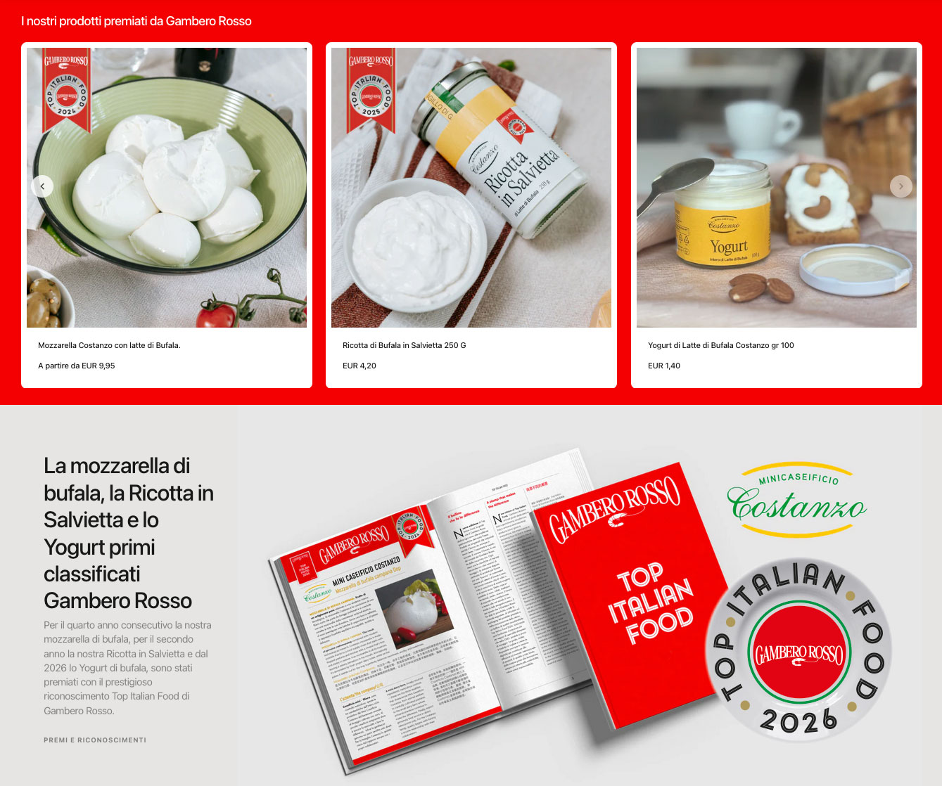 Aversa (Caserta) – Il Mini Caseificio Costanzo si conferma ancora una volta tra le eccellenze dell’agroalimentare italiano. Anche quest’anno, infatti, Gambero Rosso ha inserito tre prodotti dell’azienda – la Mozzarella Costanzo con latte di Bufala, la Ricotta in Salvietta e lo Yogurt Bianco di Latte di Bufala – nella prestigiosa guida Top Italian Food 2026, riconoscimento internazionale dedicato alle migliori produzioni del Paese.