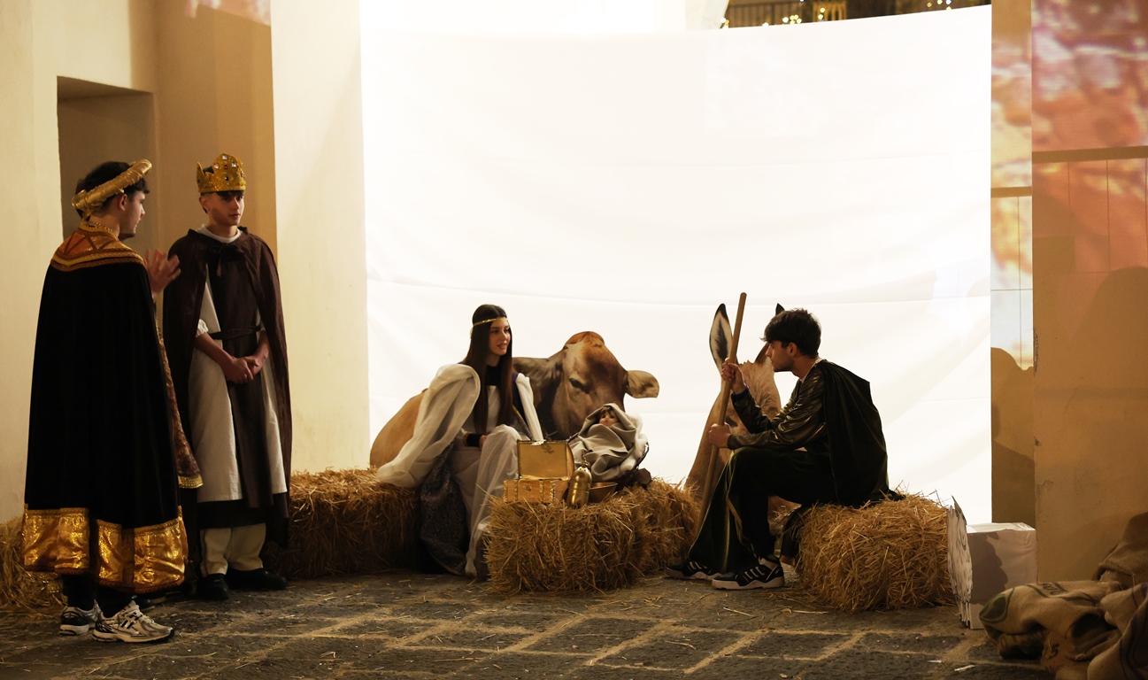 Il linguaggio del presepe – La rappresentazione ha proposto una rilettura del presepe napoletano capace di dialogare con il presente. Scene, costumi e interpretazioni hanno dato vita a un percorso in cui il passato non è stato celebrato come immagine immobile, ma riletto alla luce del mondo di oggi, compreso quello digitale, senza smarrire il valore della tradizione.