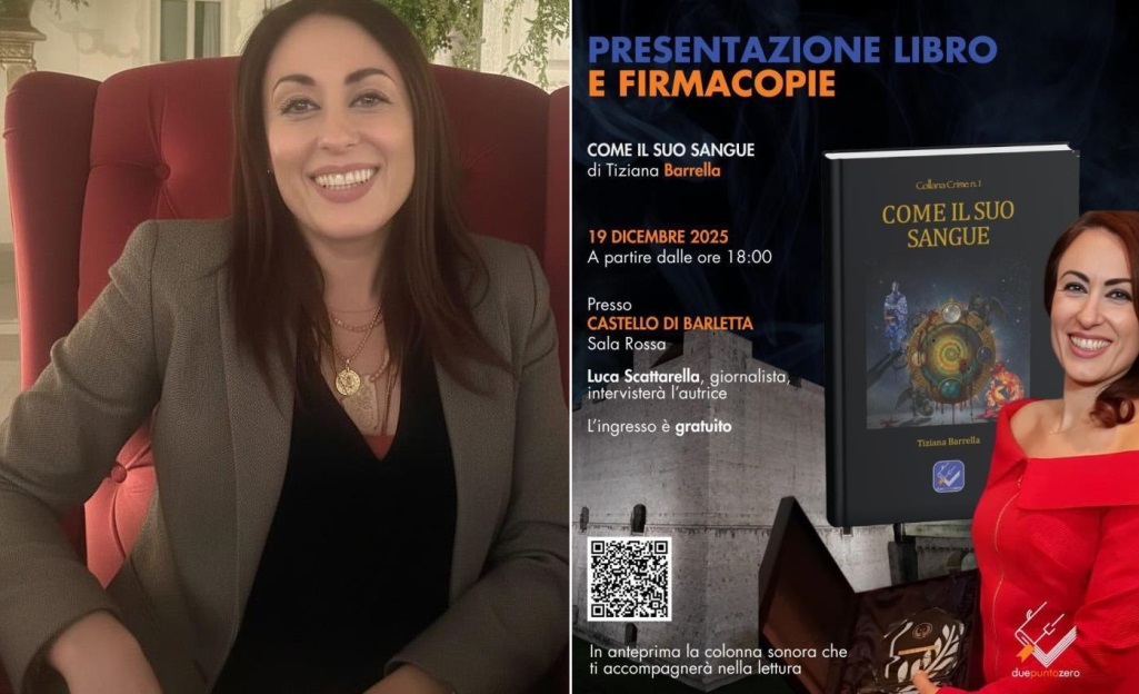La prima presentazione nazionale è in programma venerdì 19 dicembre, alle ore 18, nella suggestiva Sala Rossa del Castello di Barletta, luogo che custodisce l’unica scultura marmorea raffigurante Federico II di Svevia. Una cornice carica di storia che dialoga con l’anima del romanzo e ne amplifica l’impatto simbolico, soprattutto per una studiosa di simbolismo come l’autrice.