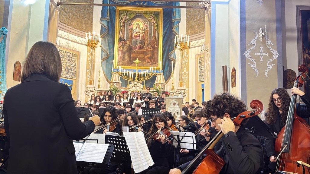 L’esibizione ha visto protagonisti orchestra e coro del liceo, che hanno proposto un percorso musicale ampio e articolato: dai richiami alla tradizione classica, con le pagine di Cimarosa, fino alle celebri colonne sonore di John Williams, senza tralasciare i canti natalizi più riconoscibili. Un repertorio pensato per dialogare con il luogo e con il tempo liturgico, valorizzando il significato spirituale dell’evento. Dietro il risultato artistico, il lavoro corale del corpo docente, che ha accompagnato e preparato gli studenti con passione e continuità. Un impegno condiviso che ha reso possibile portare il liceo fuori dalla sua sede abituale, costruendo un ponte culturale con il territorio frignanese.